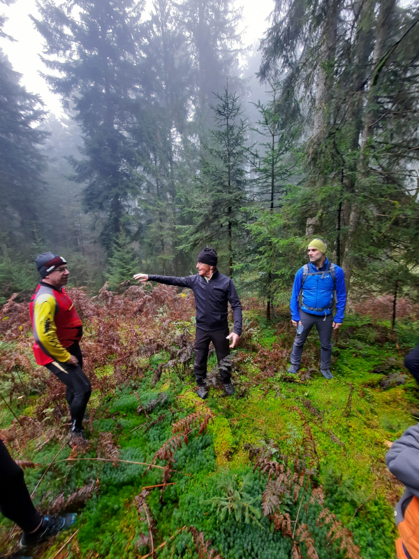 Während des Aufstiegs erklärte Walter sehr detailgenau den Streckenverlauf, welcher heute durch viele Bäume und Geländeveränderungen nur mehr von ehemaligen Startern genau rekonstruiert werden kann. Allen Teilnehmern wurde aber bewusst, wie spektakulär und herausfordernd die Streckenführung über Felskanten, Steilhänge und Skibrücken gewesen sein muss.