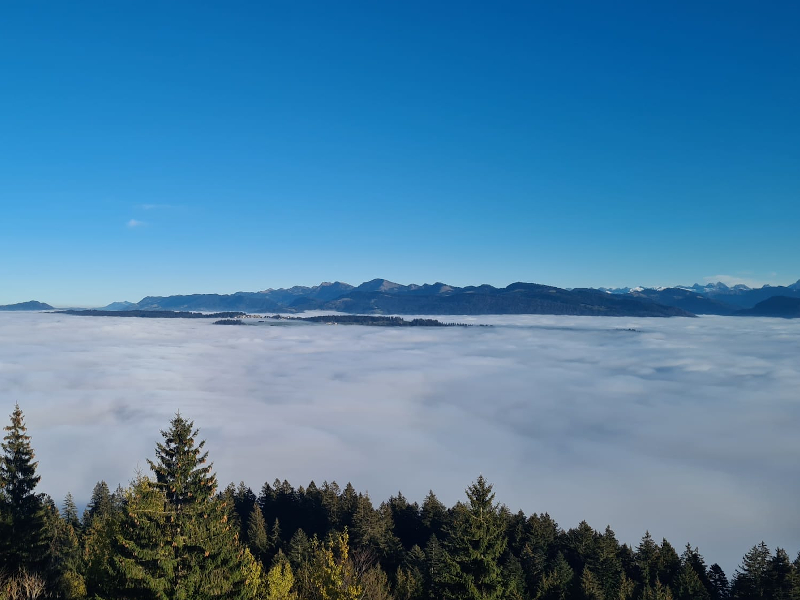 Rund 30 Interessierte sind der Einladung gefolgt und am Sonntag, den 13. November bei dichter Nebeldecke und Temperaturen um die Nullgradgrenze im Tal, Walter auf den Hirschberg gefolgt.